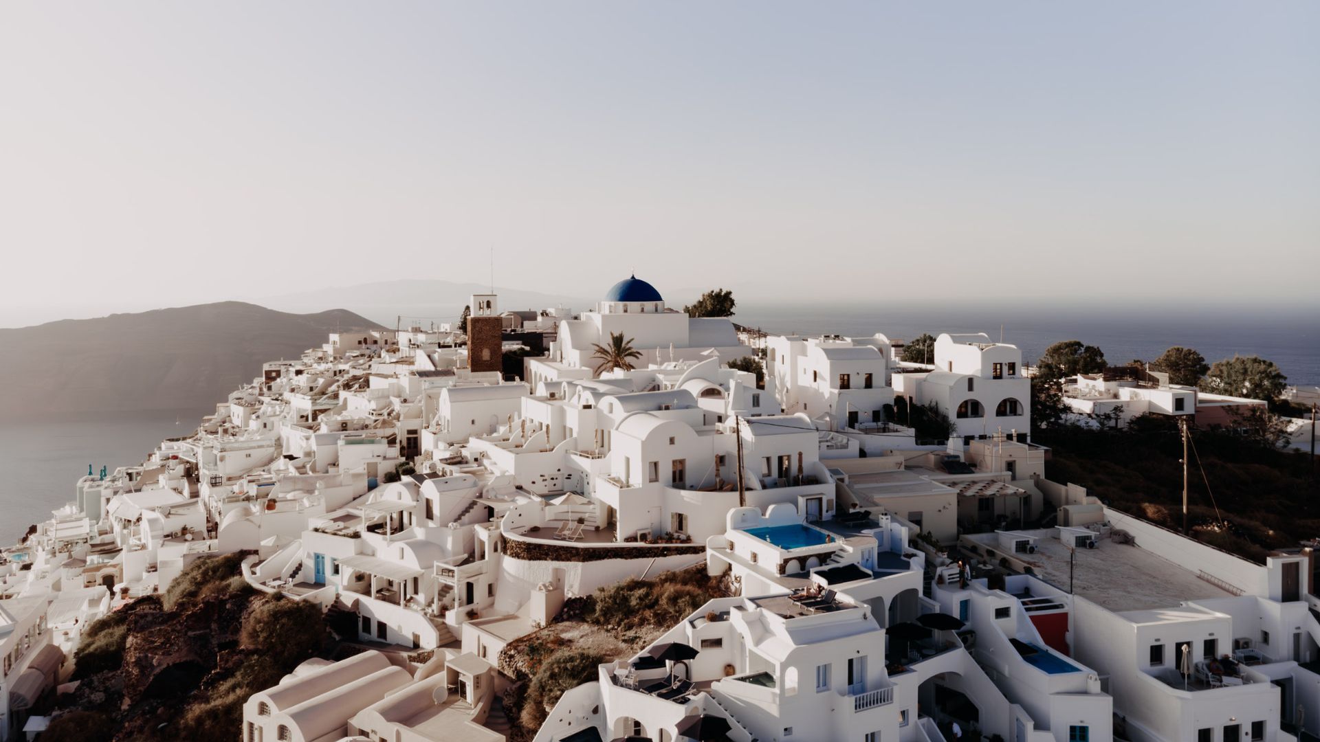 Destination wedding ceremony overlooking the Sea at Le Ciel in Santorini, Greece.